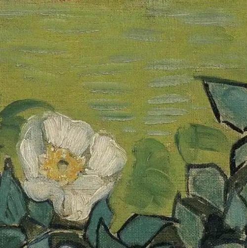 相较于《星月夜》《向日葵》等具有浓烈色彩的画作,梵高《野玫瑰》的笔触却稍显收敛。黄灰色的背景如同压抑的天空,而白玫瑰则像穿透阴霾的光;绿色的藤叶清新明快,在柔和的色彩中尽显生命的张力。这种收敛并不是梵高失去了创作激情,而是情感的隐喻和沉淀。该时期的梵高逐渐接受与精神疾病共存的状态,他不再用激烈的笔触去宣泄情绪,而是积极寻求内心的平静,每一笔都带着对世界细腻的感知和对生命的无限热爱。