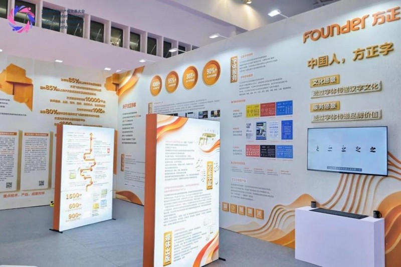 活动现场的“方正字库”展区就全面呈现了方正字库在汉字创新研究与字体设计方面的成果。其中,中华优秀传统文化传承发展工程支持项目“中华精品字库工程”,目前已推出方正甲骨文、方正王羲之行书、方正颜真卿楷书等47款精品字体。这些精品字体不仅全部免费授权给公益组织、新闻出版单位、政府机构、学校、博物馆、个人等,还免费提供给文创产品设计使用,助力传统书法艺术的传承与创新。