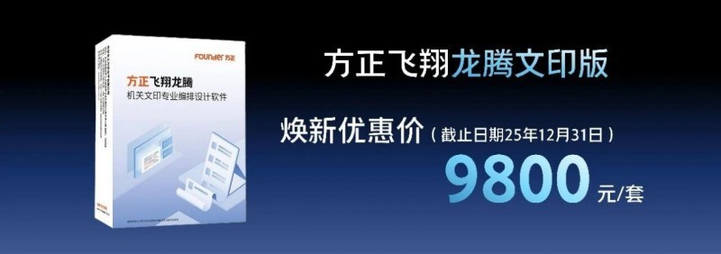 即日起至2025年12月31日,凭已购买的终身版方正排版软件均可以9800元/套的价格,换购最新发布的方正飞翔龙腾文印版。