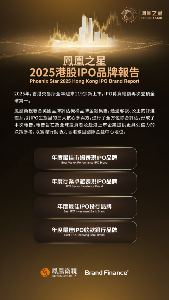 自2023年首届“凤凰之星港股最佳上市公司评选”举办以来,凤凰卫视持续关注香港资本市场发展。今年,依托2025年港股IPO的里程碑式表现,凤凰卫视携手品牌金融集团,推出聚焦港股IPO领域的专业评选活动。