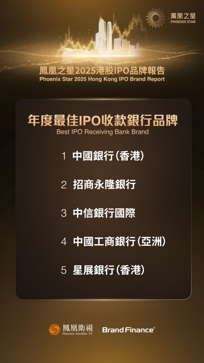 “年度最佳IPO收款银行品牌”评选中,中国银行(香港)凭借2025年服务IPO项目数量最多的表现,位居榜首;招商永隆银行位居第二,体现了其“跨境金融+本土深耕”的独特优势。